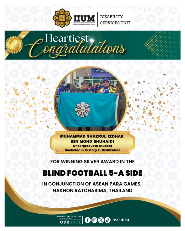 Heartiest congratulations to Br. Muhammad Shazrul Izdhar for winning Silver Award in Blind Football 5-A Side in conjunction of Asean Para Games at Nakhon Ratchasima, Thailand