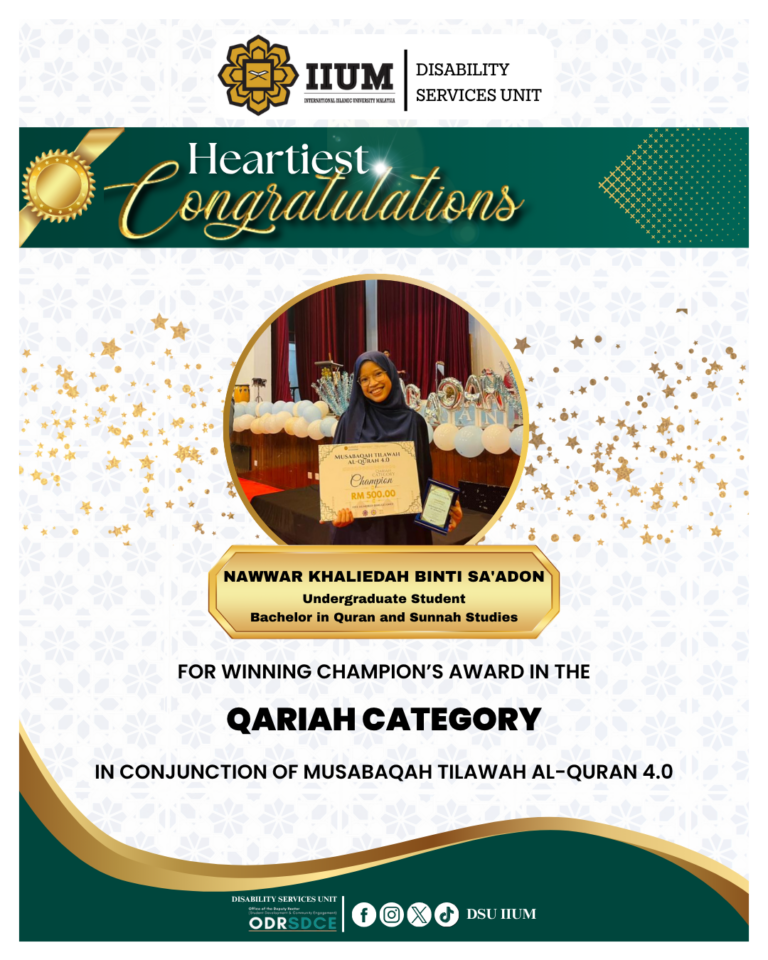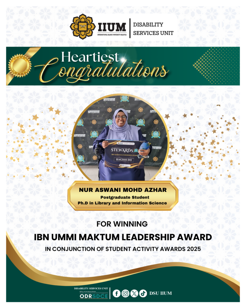 Heartiest congratulations to Sr. Nur Aswani Azhar for winning IBn Ummi Maktum Leadership Award in conjunction of Students Activity Awards 2025