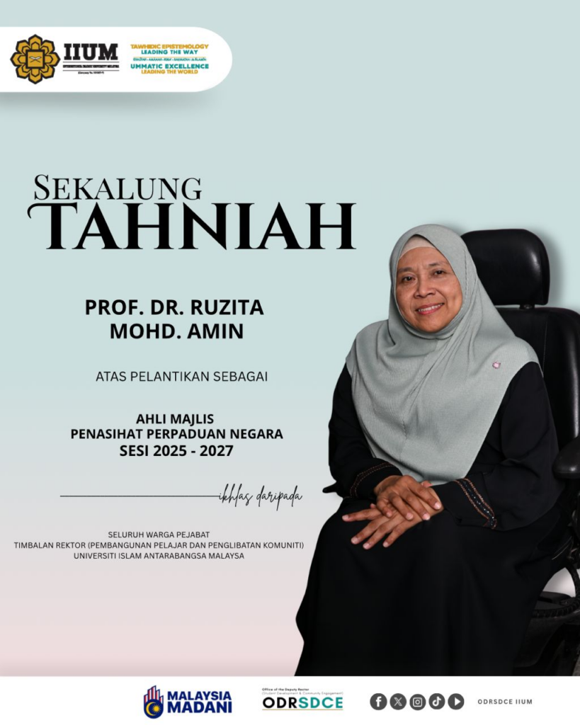 Heartiest congratulations to Prof. Dr. Ruzita Mohd. Amin, Head of Disability Services Unit on her appointment as Ahli Majlis Penasihat Perpaduan Negara for the 2025–2027 term.