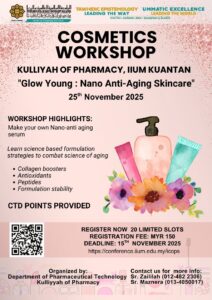 | 15th November 2025 : Cosmetics Workshop entitled Glow Young: Nano Anti-Aging Skincare |